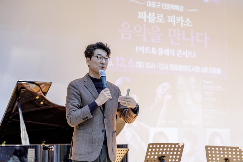 강연에 앞서 박강수 마포구청장은 “그림과 선율이 건네는 조용한 온기를 전하고 싶은 마음으로 이번 특강을 준비했다”라며 “오늘 무대에서 흐르는 빛과 소리가 구민 여러분의 하루에 따스한 위로가 되길 바란다”라고 말했다.