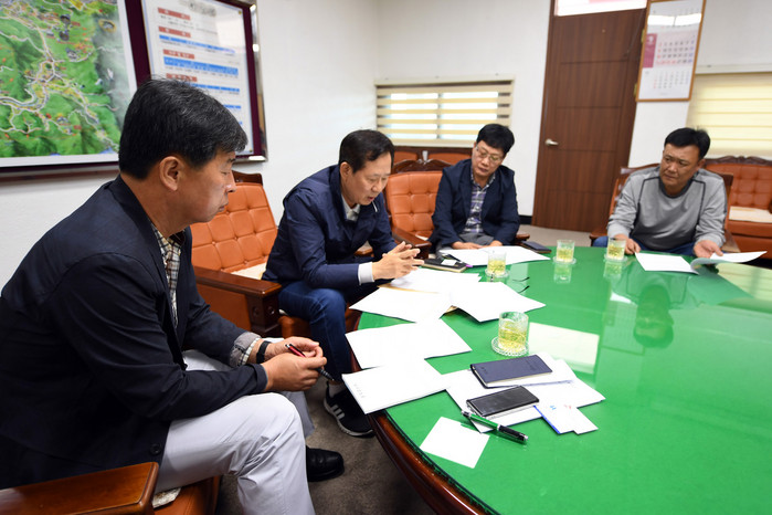 [양구군=세계타임즈 김민석 기자] 이상건 양구군의회의장이 27일 의장실에서 가스업 관계자들을 만나 당면사항을 협의했다.