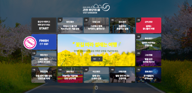 누리집에서는 △이달의 추천 여행지 연계 할인 △강원특별자치도 숙박 할인 혜택을 제공하는 강원 관광 숙박대전 △18개 시군 방문 인증 이벤트인 강원 관광 챌린지 등 다채로운 정보와 이벤트를 통해 관광객들의 흥미를 유발하고 강원여행의 즐거움을 더할 예정이다.