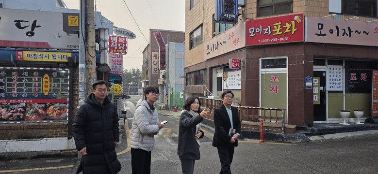 | ▲ 세류역 인근 상가 밀집 구역 현장 점검.(사진=수원시의회) |