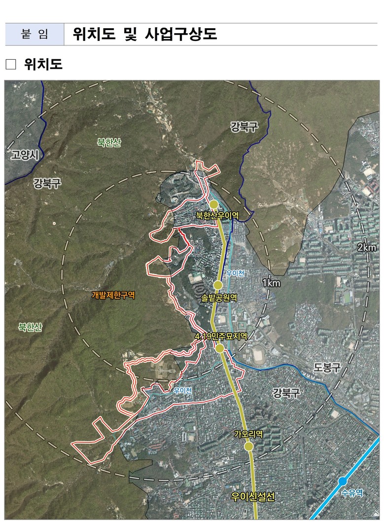 골목길 경관 개선, 보행환경 정비 등을 추진하여 생활여건을 개선하고, 우이친수 생태공원, 가족캠핑장, 진달래숲 등 지역특성을 반영한 여가·녹지공간을 확충하여 주민 이용 활성화에 기여하였다.