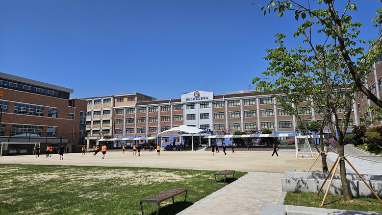 설계 단계부터 교육공동체(학생, 학부모, 교직원)의 의견을 적극 반영하여, E(Exercise)·C(Community)·O(Oxygen)을 주제로 ▲야외 농구장 설치 ▲구령대 철거 후, 야외 무대 공간 조성 ▲스탠드에 목재 데크 설치로 휴게공간 마련 ▲벚나무 및 느티나무 등을 식재하여 운동장 일부를 자연 친화적인 산책로로 조성했다.
