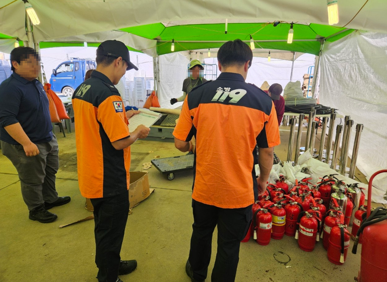 점검반은 ▲무대 및 부대시설 구조물 전도 방지 조치 ▲인파 밀집에 따른 안전사고 예방을 위한 무대·객석 구획 관리 ▲전기 안전장치 관리상태 ▲먹거리존 가스시설 설치 상태 ▲화재 예방을 위한 소화 기구 비치 현황 ▲기타 안전사고 예방시설 점검 등 지역축제장 안전관리 점검표에 따라 안전 점검을 시행했다.