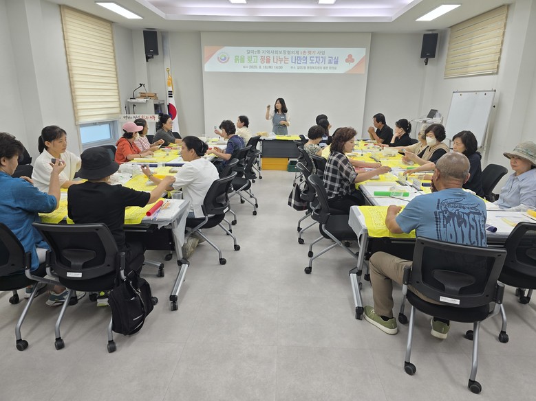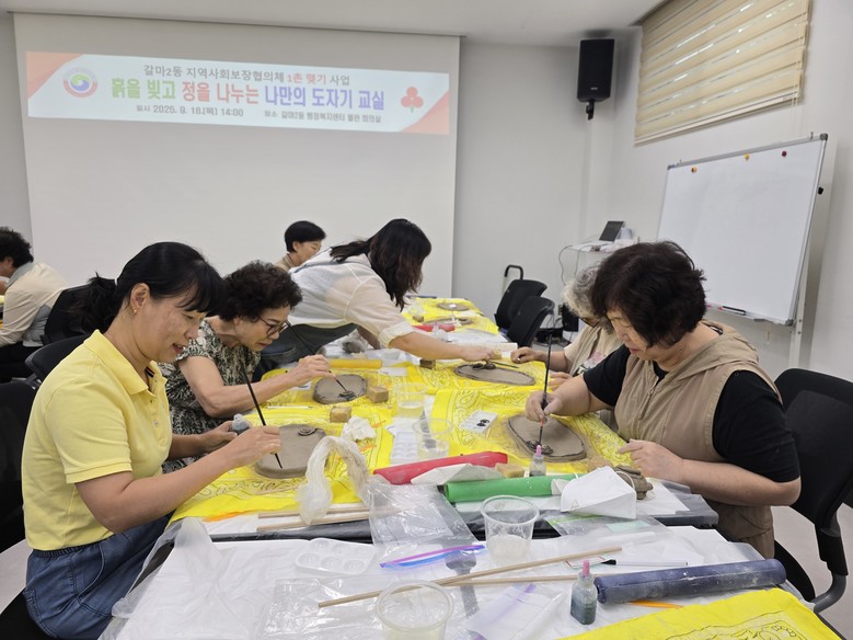 이번 프로그램은 갈마2동 지역사회보장협의체가 주관하는 ‘다시 찾은 청춘, 내 마음은 늘 봄’ 일촌 맺기 사업의 일환이다. 취약계층 어르신과 위기가구발굴단이 일대일로 결연해 매달 일일 수업에 함께 참여하는 방식으로, 이번에 두 번째 수업으로 ‘흙을 빚고 정을 나누는, 나만의 도자기 만들기 교실’이 준비되었다.