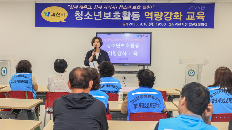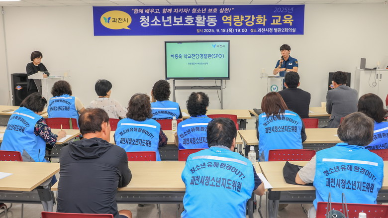 [세계타임즈=과천시 송민수 기자] 과천시는 지난 18일 시청 별관2 회의실에서 청소년지도위원, 유해환경감시단, 문원초 아버지회 등 청소년 선도·보호 활동 단체 40여 명을 대상으로 ‘함께 배우고, 함께 지키자! 청소년 보호실천!’이라는 주제로 역량 강화 교육을 했다.