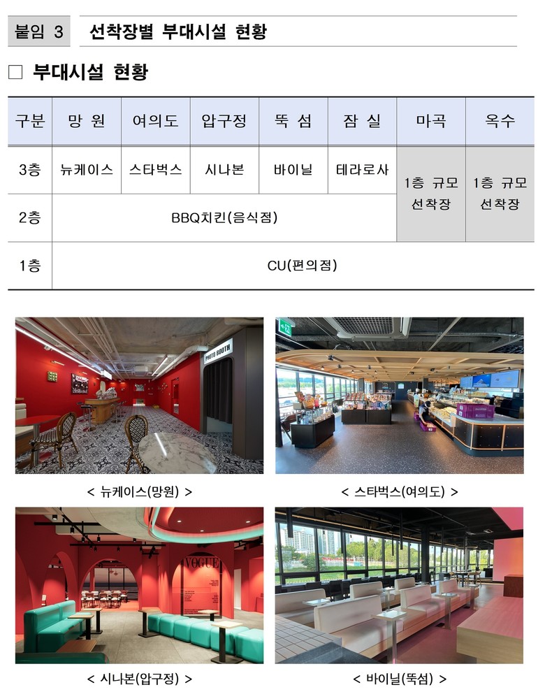 이외에도 모든 선착장에 따릉이 대여소를 설치하고, 마곡·잠실·압구정 3개 선착장과 인근 지하철역사 등을 잇는 무료 셔틀버스도 운영한다.