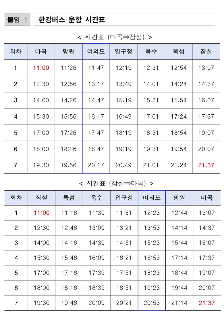 이용 관련 사항은 한강버스 누리집(www.hgbus.co.kr)에서 확인하거나 120다산콜센터로 문의하면 답변을 받을 수 있다.