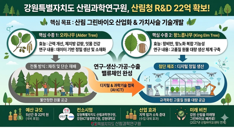 한편 강원특별자치도는 전국 4개 산림바이오 혁신성장거점 중 하나로 선정됐으며, 오는 2027년부터 산림바이오센터가 본격 가동될 예정이다.