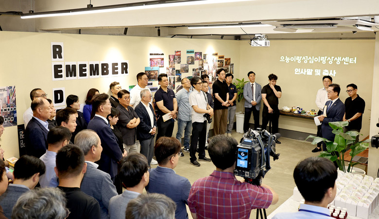 [대전 세계타임즈=이채봉 기자] 대전시의회 조원휘 의장은 30일 은행동에서 열린‘으능이랑 성심이랑 상생센터 개소식’에 참석해 은행동상인회 김태호 회장과 로쏘 주식회사 임영진 대표이사를 비롯한 관계자들과 인사를 나눴다.