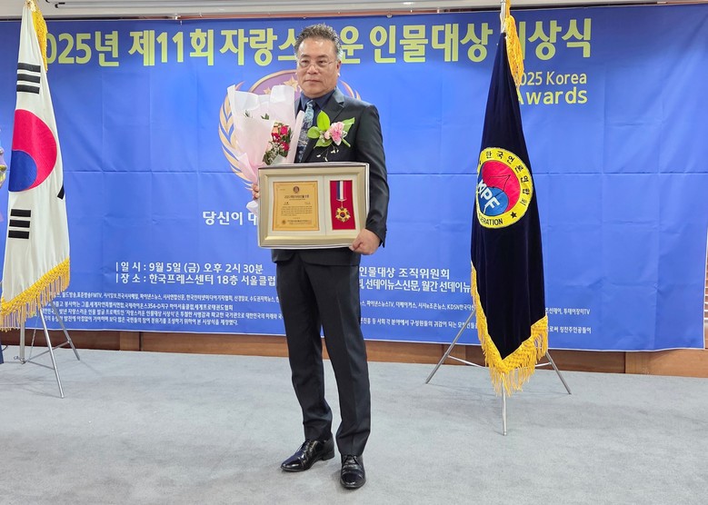 [세계타임즈]최성룡기자 = ‘더지원글로벌’ 및 ‘성수드래곤(Seongsu Dragon)’ 브랜드를 이끄는 김성수 대표가 2025년 9월 5일, 한국프레스센터 서울클럽에서 개최된 ‘2025 자랑스러운 인물 대상’ 시상식에서 사회공헌부문 대상을 수상했다.