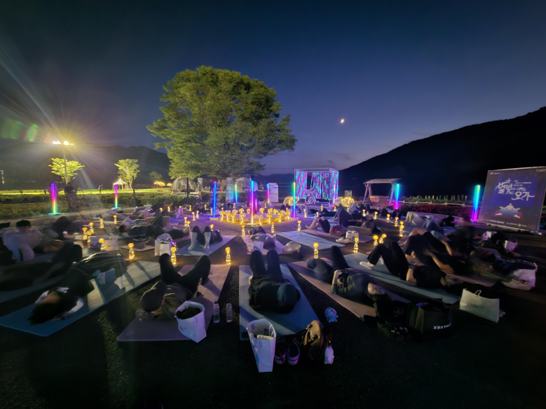 해가 지고 어둠이 깔린 자연 속에서 이색적이고 화려한 조명들을 배경으로 전문 요가 강사의 지도로 진행된 ‘별빛 요가’는 자연과 하나 되는 편안한 음악 속에서 요가와 명상을 통해 긴장을 풀고 내면의 평온을 되찾는 특별한 힐링의 시간이 되었다.