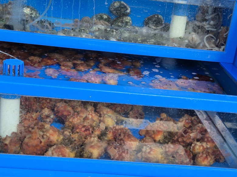 또한 손님들에게 주목받는 대개가 한창 '인기 메뉴'로 떠오르고 있다.큰 수족관에 대게.킹크랩 랍스터 등 다양한 해산물과 횟감들이 수족관에 가득하다.특히 대개는 가계에서 쪄서 잘 양념이 들어간 대개를 먹거나 아니면 생물로 구입하여 집에서 쪄 먹는 방법도 있다 하지만 집에서 잘못 찌면 비리고 맛이 없기 때문에 쪄서 포장하여 가져가는걸 적극 추천하고 있다.