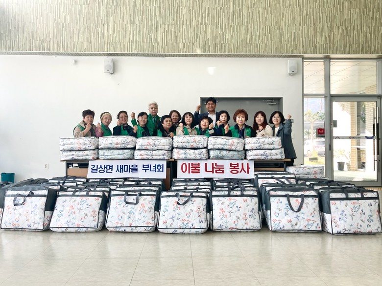 이에 서광석 길상면장도 “겨울을 앞두고 어려운 이웃들에게 전달된 이불은 따뜻함을 넘어 함께 더불어 사는 우리 사회를 더욱 아름답고 긍정적으로 만들어 가는 길”이라며, “쌀쌀한 날씨에도 지역사회를 위해 애쓰는 길상면 새마을지도자부녀회의 활동에 감사드리고, 앞으로도 나눔과 봉사활동으로 더불어 사는 길상면이 될 수 있도록 최선을 다하겠다”고 전했다.