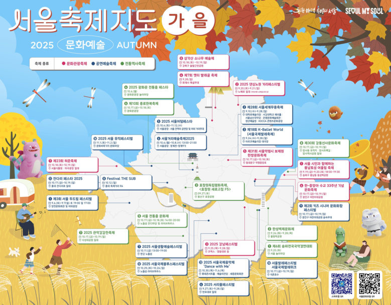김태희 서울시 문화본부장은 “가을은 축제를 즐기기에 가장 좋은 계절인 만큼, 시민 여러분이 보다 쉽고 편리하게 행사를 즐기실 수 있도록 <서울축제지도> 가을편을 마련했다”며 “앞으로도 자치구와 민간예술단체의 축제를 적극 지원해 서울의 축제문화산업을 발전시키고, 시민들이 일상 속에서 자연스럽게 문화예술을 누릴 수 있도록 힘쓰겠다”라고 말했다.