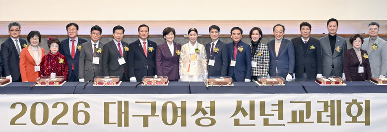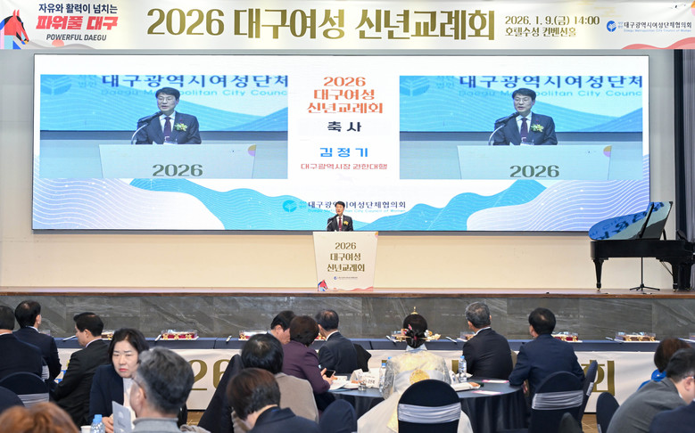 [대구 세계타임즈=한윤석 기자] (사)대구광역시여성단체협의회(회장 이종선)가 주관하는 ‘2026년 대구여성 신년교례회’가 1월 9일(금) 오후 2시, 지역 여성 지도자 및 기관·단체장 등 400여 명이 참석한 가운데 호텔수성 컨벤션홀에서 성황리에 개최됐다.
