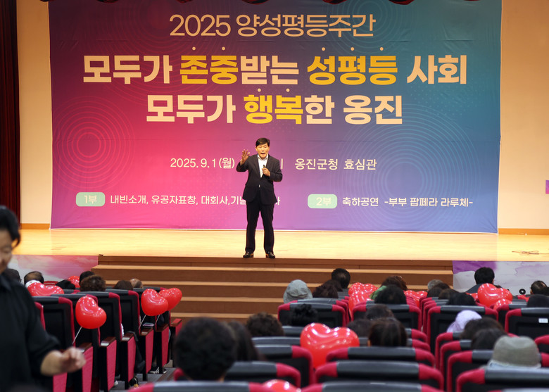 [옹진군 세계타임즈=심하린 기자] 옹진군(군수 문경복)은 1일, 옹진군청 효심관에서 2025년 양성평등주간(9월1일~7일)을 맞아 양성평등주간 기념행사를 열고, 성평등 사회 구현을 위한 실천의지를 다졌다고 밝혔다.