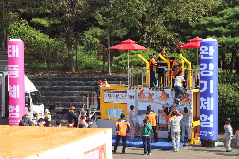 행사에는 특수학교 및 일반학교 특수학급 13개교 332명, 장애인직업재활시설 이용자 등 약 700명이 참여했으며 지진·태풍 체험, 화재 및 응급처치 등 8개 체험훈련존과 소화기·완강기 사용법, 화재대피 및 CPR 실습 등 체험 프로그램이 운영됐다.