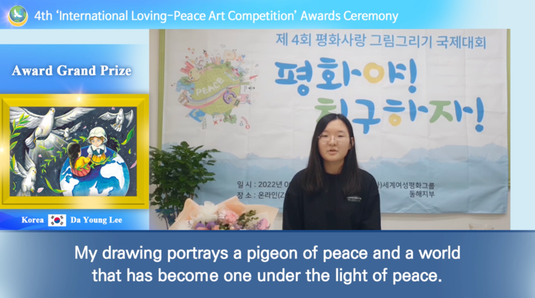 [세계타임즈 백진욱 기자] 지난 29일 오후 9시(현지시각) ㈔세계여성평화그룹(IWPG, 대표 윤현숙)이 주최하고 IWPG 국내외 지부가 주관하는 제4회 ‘평화사랑 그림그리기 국제대회’의 본선 시상식이 수상자와 가족 등 850여 명이 온라인으로 참석한 가운데 성황리에 마무리됐다.
