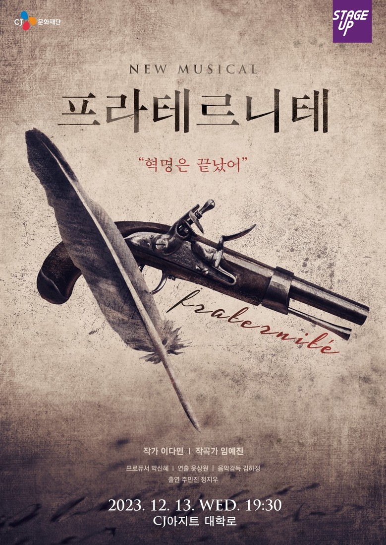 [세계타임즈 = 이현진 기자] CJ문화재단이 2023년 '스테이지업' 창작 뮤지컬 부문 리딩 쇼케이스 작품으로 <프라테르니테>가 선정됐다고 20일 밝혔다.