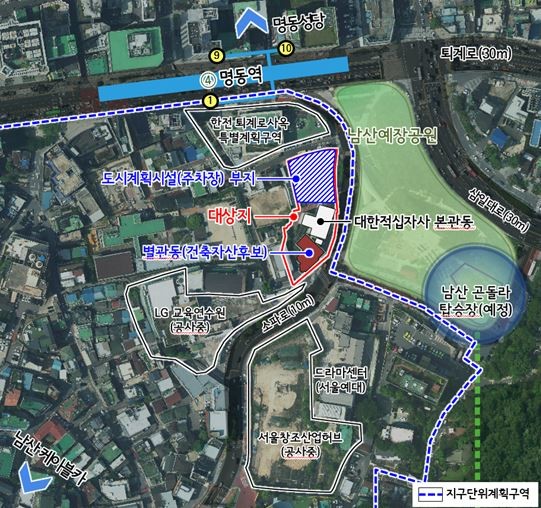 이번 지구단위계획의 변경은 대한적십자사 방문민원 수요뿐만 아니라 명동·남산권역의 관광 및 열악한 지역주차 여건을 개선하기 위해 도시계획시설(주차장)사업을 시행하고자, 대한적십자사 등의 제안에 따라 추진되었다.