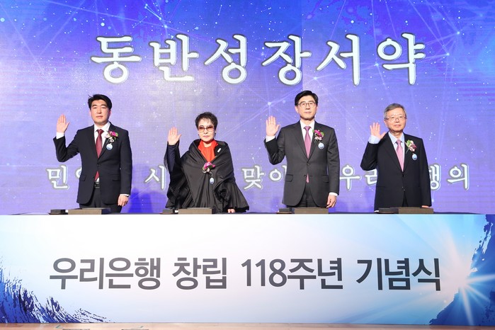 이날 창립기념식에서는 우리은행 118년 역사를 돌아보고 민영화 이후의 비전을 담은 기념영상과 이광구 은행장의 창립기념사 및 박필준 노조위원장 당선인의 축사가 이어졌다.