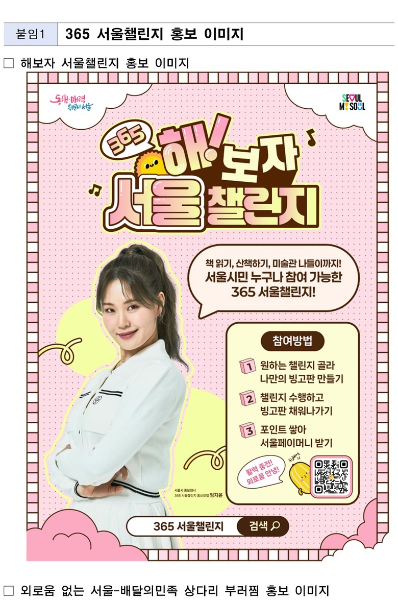 실제로 ‘365 서울챌린지’ 공식 누리집에는 “처음엔 포인트가 궁금해 시작했는데 빙고를 채우는 재미에 산책도 하고, 도서관 모임도 나가게 됐다” 등 다양한 참여 소감이 올라와 있다.