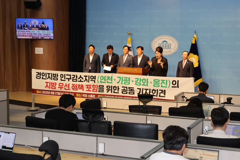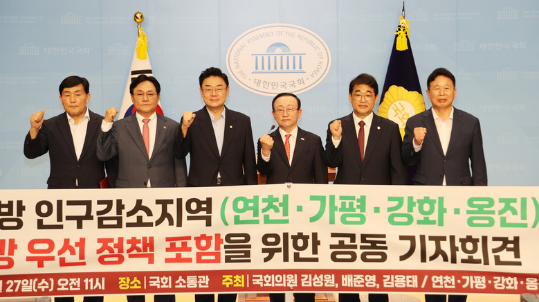 이날 기자회견에는 김성원(동두천·양주·연천), 배준영(중구·강화·옹진), 김용태(포천·가평) 국회의원을 비롯해 4개 군 단체장이 참석, “수도권 내 인구감소지역도 비수도권 지역과 동일하게 국가 정책의 우선 지원 대상에 포함시켜야 한다”는 공동건의문을 발표했다.