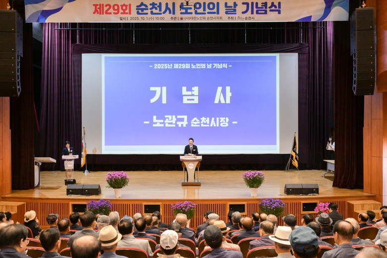 [순천시 세계타임즈=우덕현 기자] 순천시(시장 노관규)가 주최하고 (사)대한노인회 순천시지회(회장 김영수)가 주관하는 제29회 노인의 날 기념식을 지난 1일 문화건강센터 다목적홀에서 성황리에 개최했다고 밝혔다.
