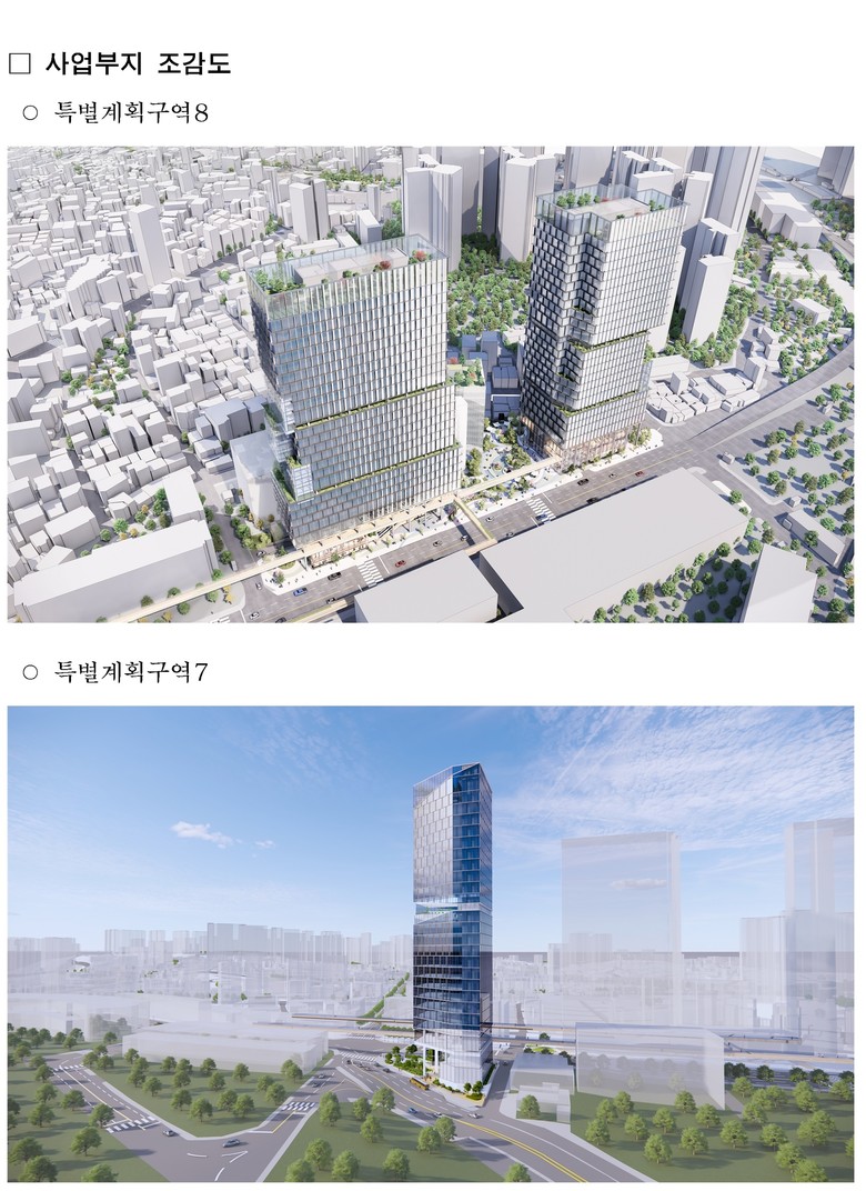 금번 계획 결정에 따라 특별계획구역7은 지하8~지상21층 규모(연면적 27,627㎡, 용적률 949%), 특별계획구역8은 지하8~지상27층 규모(연면적 155,367㎡, 용적률 975%)의 신산업용도(AI.로봇 등) 중심 업무시설과 근린생활시설 등이 들어설 예정이다.