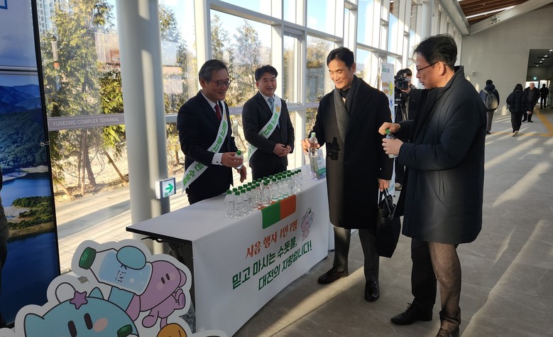 특히, 대전시 공식 캐릭터인 ‘꿈씨패밀리’를 활용한 홍보는 이용객들에게 색다른 즐거움을 더한다. 본부는 상수도 홍보를 위해 자체 제작한 꿈씨패밀리 캐릭터 입간판과 청정 상수원인 대청호 전경을 배경으로 ‘이츠수 포토존’을 조성, 터미널 이용객들이 물을 마시며 사진을 찍고 추억을 남길 수 있도록 했다.