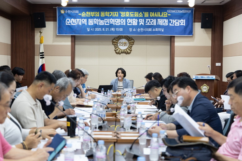 [순천시 세계타임즈=우덕현 기자] 순천시의회 문화경제위원회(위원장 김미연)는 지난 21일 순천시의회 소회의실에서 순천지역 동학농민혁명의 현황 및 조례안 제정 간담회를 개최하였다.