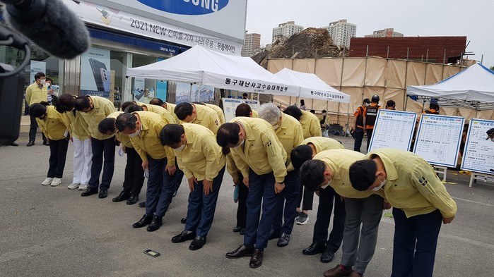 어제 오후 4시 20분쯤 철거 공사 중이던 5층 건물이 무너지면서 시내버스를 그대로 덮치는 대형 참사가 발생, 이 사고로 버스 안에 타고 있던 17명이 그대로 매몰된 뒤 승객 9명이 숨지고, 8명이 중상을 입었다.