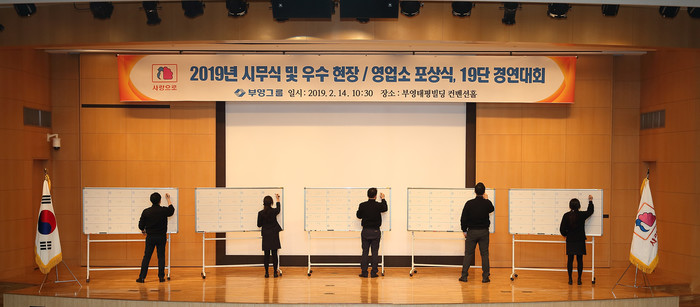 부영그룹(회장 이중근)은 이날 오전 부영태평빌딩 컨벤션홀에서 시무식과 함께 19단 경연대회를 개최했다. 특히 올해 시무식은 지난해와 달리 신년(1월 1일) 이후가 아닌, 구정 연휴 이후에 열렸다.