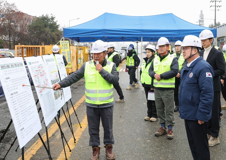 이장우 시장은 현장점검을 통해 ▲보행자 및 차량 통행 안전 여부 ▲동절기 현장근로자 방한대책 ▲교통처리상황예고 및 홍보 여부 등을 중점 확인했으며, 현장 관계자들에게 철저한 안전관리와 시공 품질 확보를 당부했다.