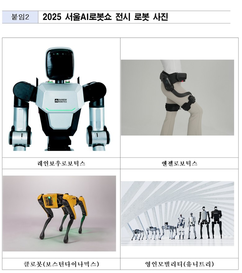 주용태 서울시 경제실장은 “2025년 제1회 서울AI로봇쇼는 시민 체험과 산업·투자 연계를 아우르며 ‘로봇 친화도시 서울’로 도약하는 중요한 계기가 될 것”이라며 “이번 행사를 통해 기술 전시를 넘어 시민들이 일상 속에서 로봇을 직접 경험하고, 기업의 성장과 정책 성과가 함께 어우러지는 장을 마련하겠다”고 밝혔다.