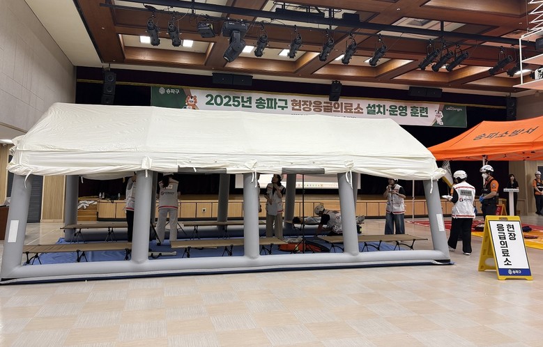 [송파구 세계타임즈=이장성 기자] 서울 송파구(구청장 서강석)는 9월 9일 송파구청 대강당에서 진행한 ‘현장응급의료소 설치·운영 훈련’을 성공적으로 마무리했다고 밝혔다.