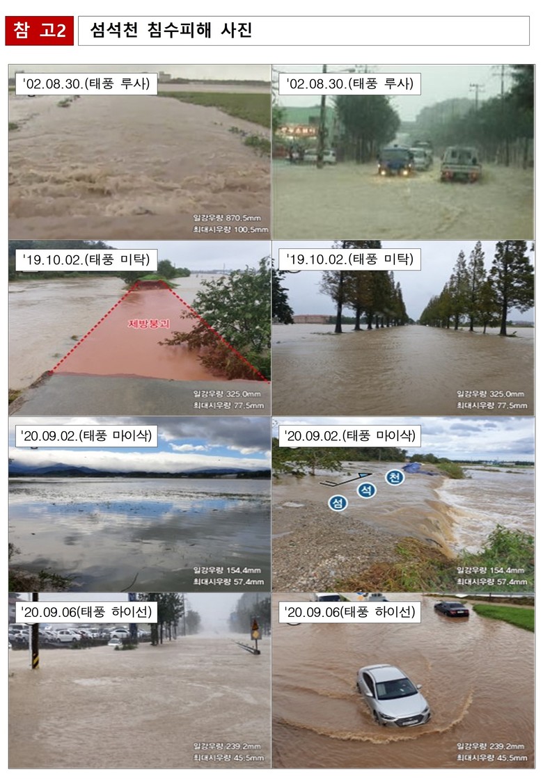 태풍 루사(2002년 8월), 매미(2003년 9월), 미탁(2019년 10월), 마이삭·하이선(2020년 9월), 힌남노(2022년 9월) 등 주요 태풍과 집중호우 때마다 지역 주민들이 수해 피해를 겪어왔다. 이번 사업을 통해 섬석천 일대의 수해 피해 위험이 완전히 해소될 것으로 기대된다.