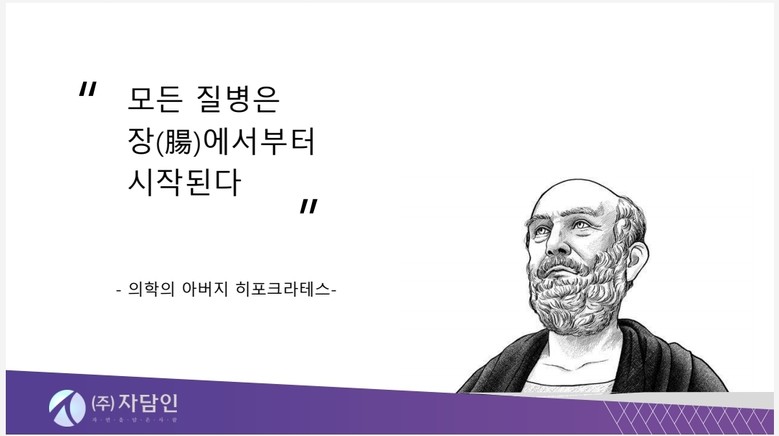 “인간이 살아가는데 최고의 재테크 "장 건강"을 삶의 지표로 삶고 20여년 오직 한길로 걸어온그가 자담인을 만나면서 자신이 추구하는 길을 걷고 있는지 모른다.