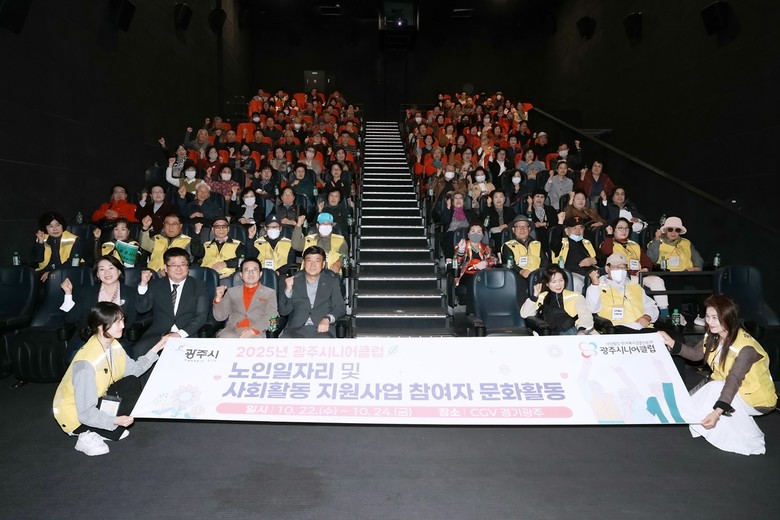 [광주시 세계타임즈=송민수 기자] 광주시니어클럽은 지난 22일부터 24일까지 3일간 CGV경기광주점에서 ‘노인 일자리 참여자 문화활동’을 성황리에 진행했다.