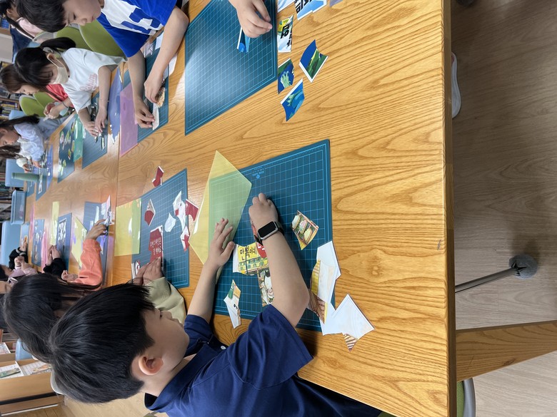 4월 24일, 도서관은 순식간에 거대한 퍼즐 놀이터로 변신했다. 3-4학년 학생들은 집중력을 발휘하여 조각난 책 표지 퍼즐을 맞추고, 마침내 완성된 그림을 보며 환호성을 질렀다. 제한 시간 안에 책 제목까지 정확하게 외치는 아이들의 모습은 마치 책 속 주인공이 된 듯 생기 넘쳤다.