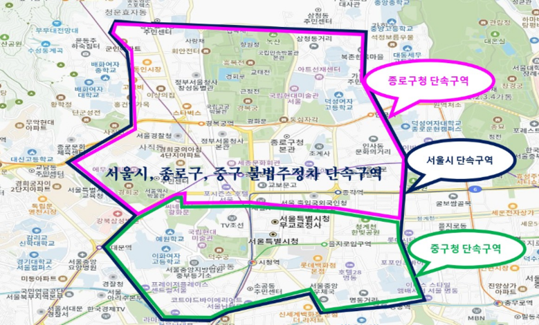 행사 당일 21일(토) 09시부터 22시까지 광화문, 세종대로 일대 행사장 주변 도로를 대상으로 불법 주정차 특별 단속을 시행한다. CCTV 차량이 순회하며 계도 위주의 단속을 실시하고, 불응 시에는 자치구 등과 협업해 차량 과태료 처분 및 견인 조치를 취할 예정이다.
