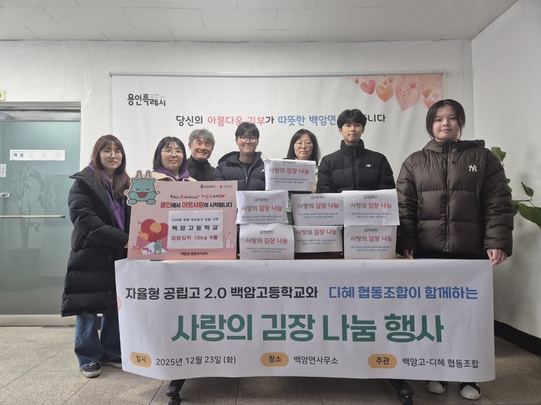 ▲ 백암고등학교(교장 전태창)는 같은 날 학생들과 함께 김장한 김치 9통을 전달했다.