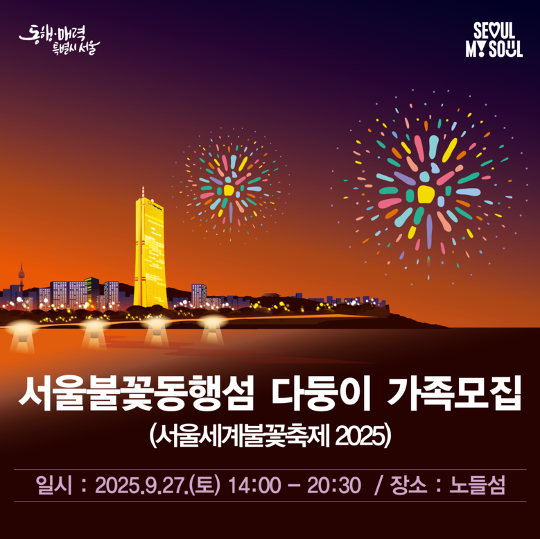 - 노들섬 ‘서울불꽃동행섬’ 변신, 다문화·한부모·다둥이 가족 3,500명 관람…쾌적하고 안전한 관람 가능