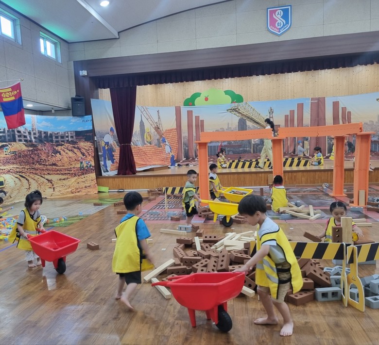 체험 활동은 유아들이 평소 접하기 어려운 거대한 건축물 교구를 활용해 이루어졌다. 유아들은 무선 조정 포크레인과 덤프트럭을 사용해 지반공사를 체험하며 땅을 파고 흙을 밀고 돌을 나르는 과정을 통해 건물의 기초 작업이 얼마나 중요한지 배웠다. 이어서 건물의 뼈대를 세우는 H빔을 이용해 구조물 공사를 체험하며 건축물의 기본 구조를 이해했다.
