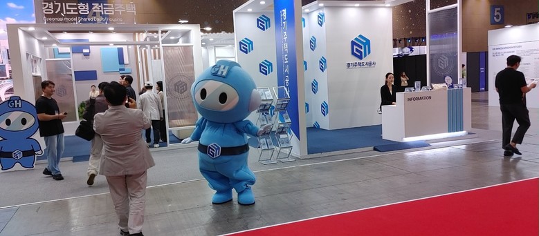 | ▲26일 열린 ‘월드시티테크 엑스포’에서 경기주택도시공사(GH)의 귀여운 캐릭터 '지비'가 관람객들을 반갑게 맞이하고 있다. |