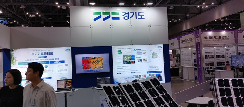 | ▲26일 킨텍스 제1전시장 4~5홀에서 열리는 ‘2025 월드시티테크 엑스포’에서 경기기후플랫폼 등 다양한 콘텐츠를 소개하는 경기도 홍보관 모습. |