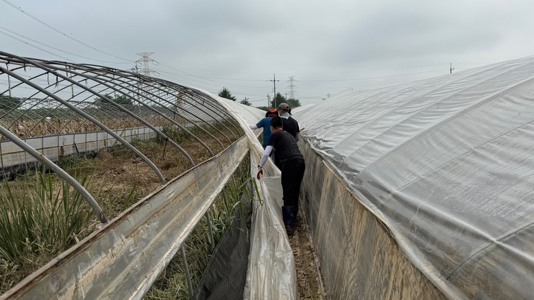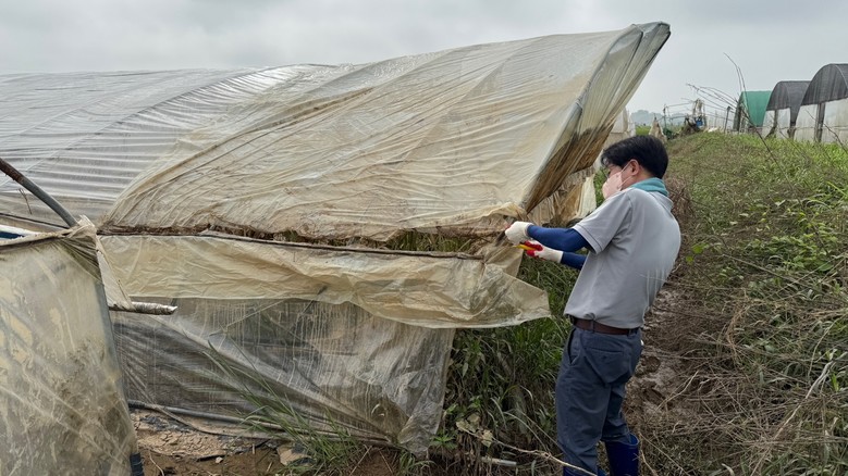 이날 직원들은 예산군 신암면 조곡리에서 침수 피해를 입은 시설하우스 10여 동의 복구 작업에 나섰다.