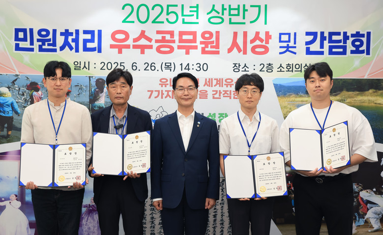 2025년 상반기 민원처리 우수공무원은 ‘국민신문고 분야’ 5명, ‘민원처리 마일리지 분야’ 5명을 선정하여 군수 표창을 수여하고, 부상으로 고창사랑상품권을 제공했다.
