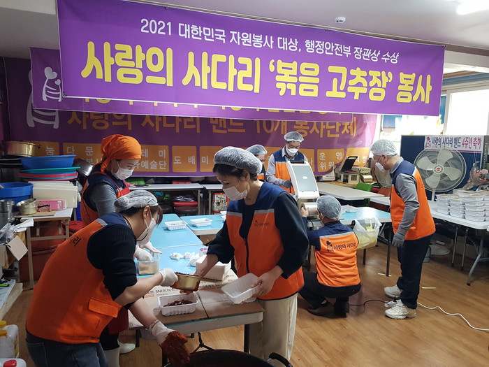 대전시장애인주간보호센터 유근선 회장은 “추운 날씨에도 장애인분들게 맛있는 볶음고추장을 지원해준 사랑의 사다리 밴드 봉사단체에 감사함을 전한다.”고 말했다.