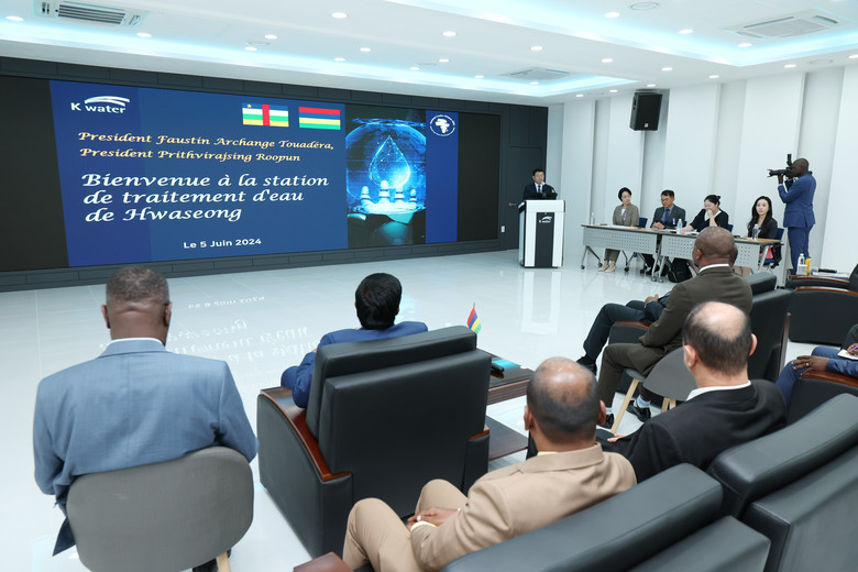 한-아프리카 협력 확대를 위해 열린 한-아프리카 정상회의 중 중앙아프리카공화국의 포스탱 아르크앙즈 투아데라 대통령, 마다가스카르 공화국의 안드리 라주엘리나 대통령, 모리셔스 공화국의 프리쓰비라싱 루푼 대통령이 선진 물 기술 답사 및 교류 확대를 통해 기후위기시대 물 문제 해법을 모색하고자 6월 5일 경기도 화성 한국수자원공사 AI 정수장을 찾았다.